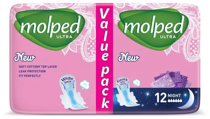 Tampoane igienice ultra-subțiri pentru femei cu aripi Molped Ultra Night.