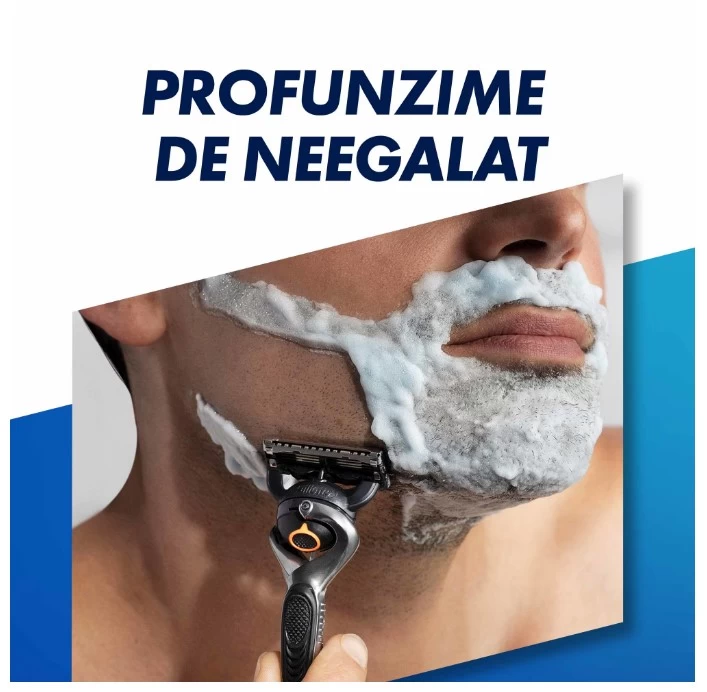 Aparate de ras Gillette cu 5 lame acoperite pentru a reduce frecarea; un bărbierit pe care abia îl simțiți