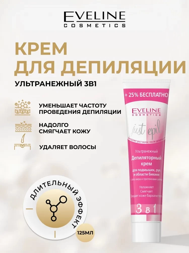 Evelin Crema depilatoare ultra-delicata pentru corp 3-în-1 Just Epil, 125 ml