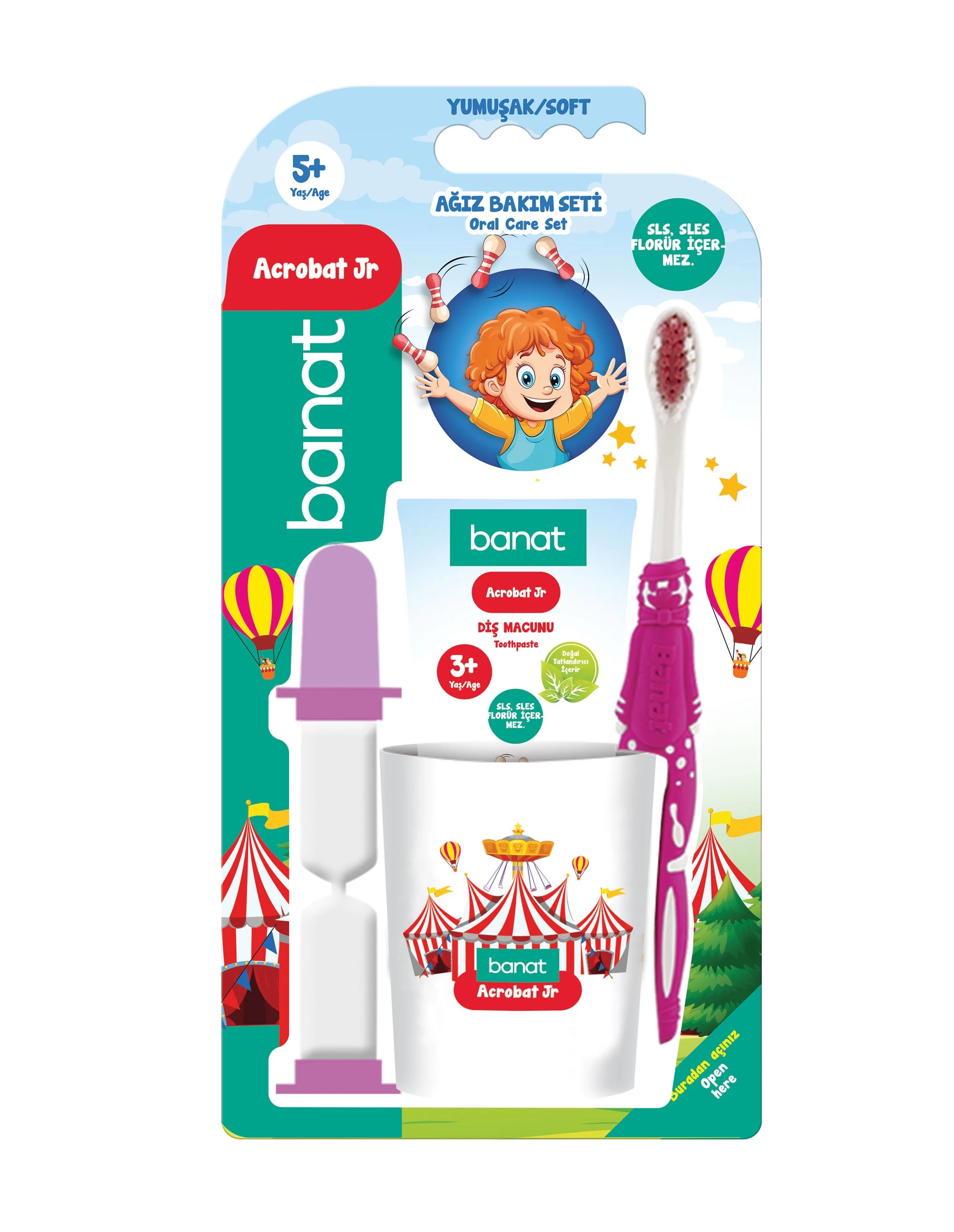 - Banat Set de îngrijire orală pentru copii, Acrobat Junior Oral Care Kit