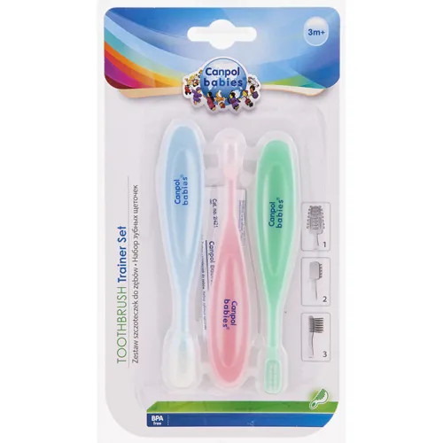 Setul de periuțe de dinți pentru bebeluși Canpol este format din trei articole: