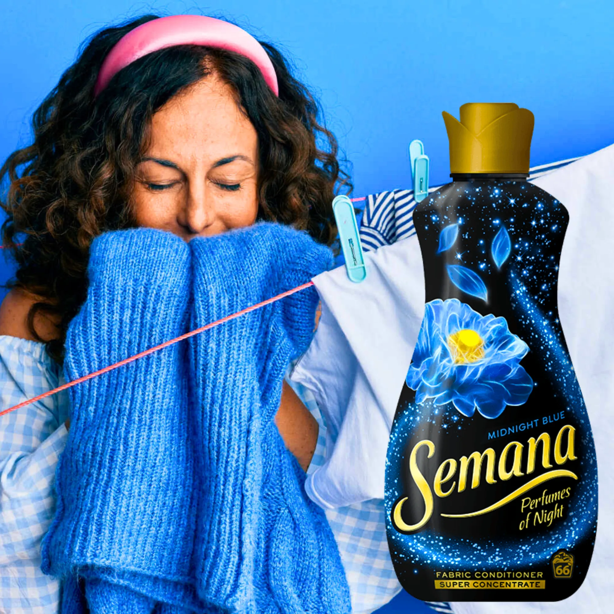 Sofisticate, misterioase, senzuale - parfumurile Midnight Blue sunt create special pentru cei care nu cauta un parfum obisnuit si aprecieaza parfumurile de lux. Inchide ochii, experimenteaza intensitatea parfumurilor balsamului Semana si rasfata-ti hainele cu o doza recomandata de numai 25 ml pentru 4-5 kg de rufe.