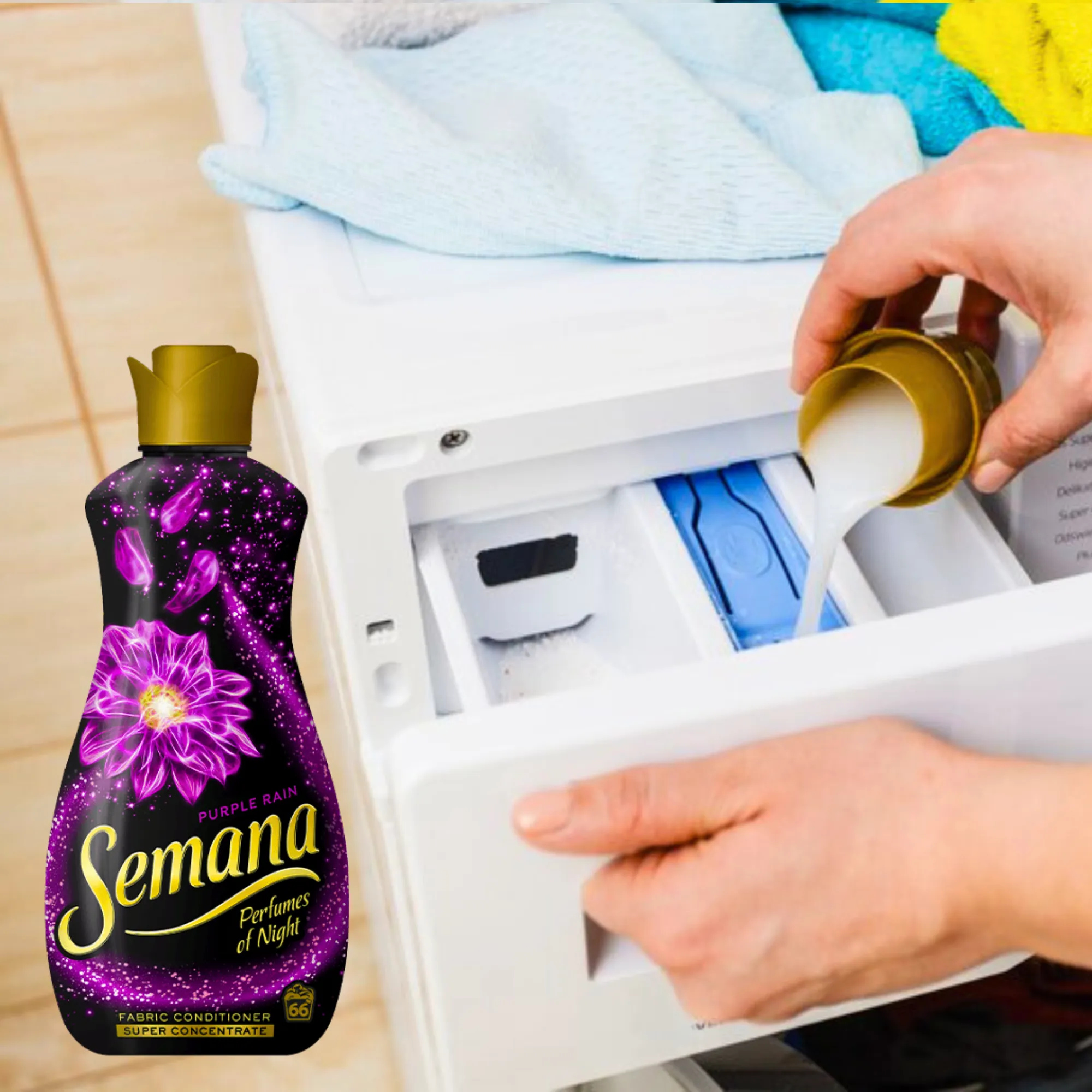 Pentru a obtine rezultate excelente Semana pune accent pe calitate, folosind cele mai bune ingrediente, cele mai noi tehnologii si parfumuri dezvoltate de catre casele de parfumuri de top din lume. Acum, formula sa super-concentrata asigura un efect de lunga durata folosind o doza mica de balsam, astfel incat o sticla de balsam Semana este suficienta pentru spalarea mai multor haine.