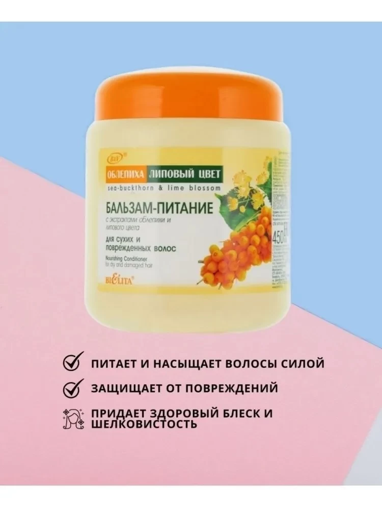 Balsamul hrănitor este esențial pentru îngrijirea părului uscat și deteriorat. Extractele de cătină de mare și de tei, uleiul de cătină de mare saturează și hrănesc părul cu putere, acoperă fiecare fir de păr cu un înveliș protector. Ca rezultat, părul dvs. este protejat de deteriorări, devine strălucitor și mătăsos.