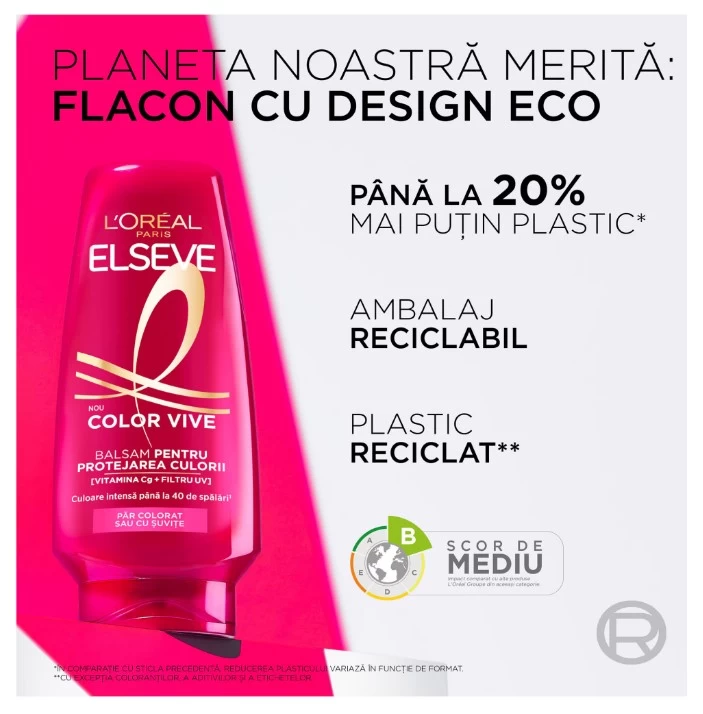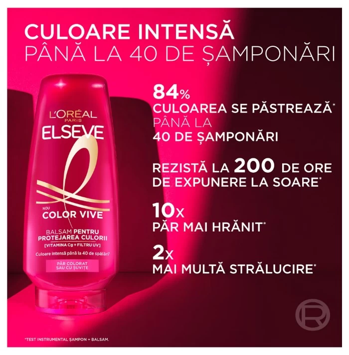 Balsamul Color Vive de la Elseve, cu o formula cu bujor rosu si filtru UV, vine in ajutorul parului colorat.