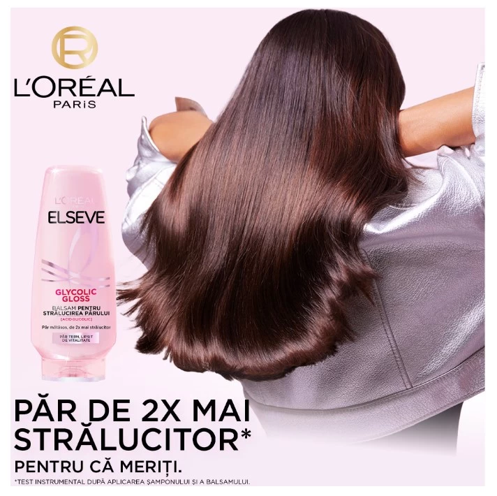 Balsamul Elseve Glycolic Gloss imbogatit cu [Acid Glicolic] imbunatateste calitatea parului tern, lipsit de vitalitate. Un balsam care are grija de fibra capilara!
