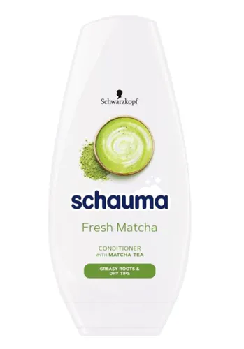 BALSAM Schauma Fresh Matcha pentru par gras la radacina & uscat la varfuri. Contine extract din ceai matcha si ulei de soia.