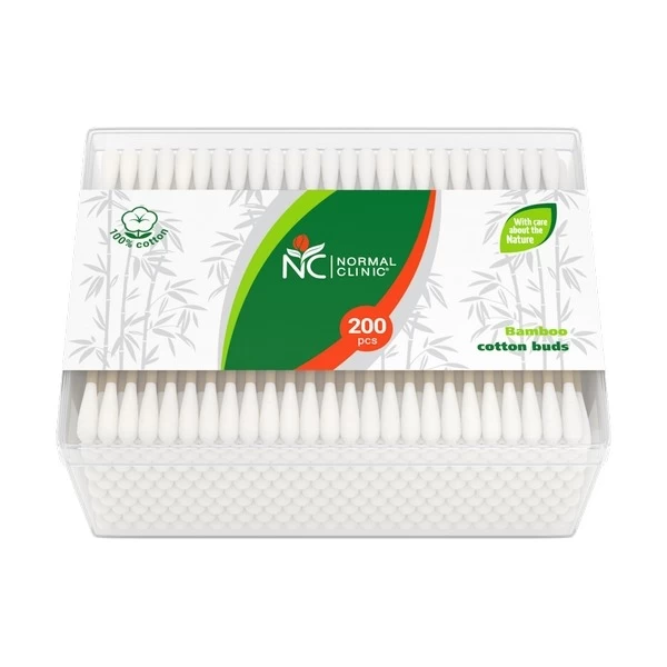 Tampoanele de bumbac din bambus NORMAL clinic® îndepărtează delicat murdăria și sunt perfecte pentru aplicarea și îndepărtarea machiajului. Capul bețișorului de bumbac are un tampon de bumbac moale care este fabricat din fibre de bumbac 100%. Tulpina bețișoarelor de bumbac este fabricată din lemn de bambus. Bețișoarele sunt biodegradabile într-un mediu natural.