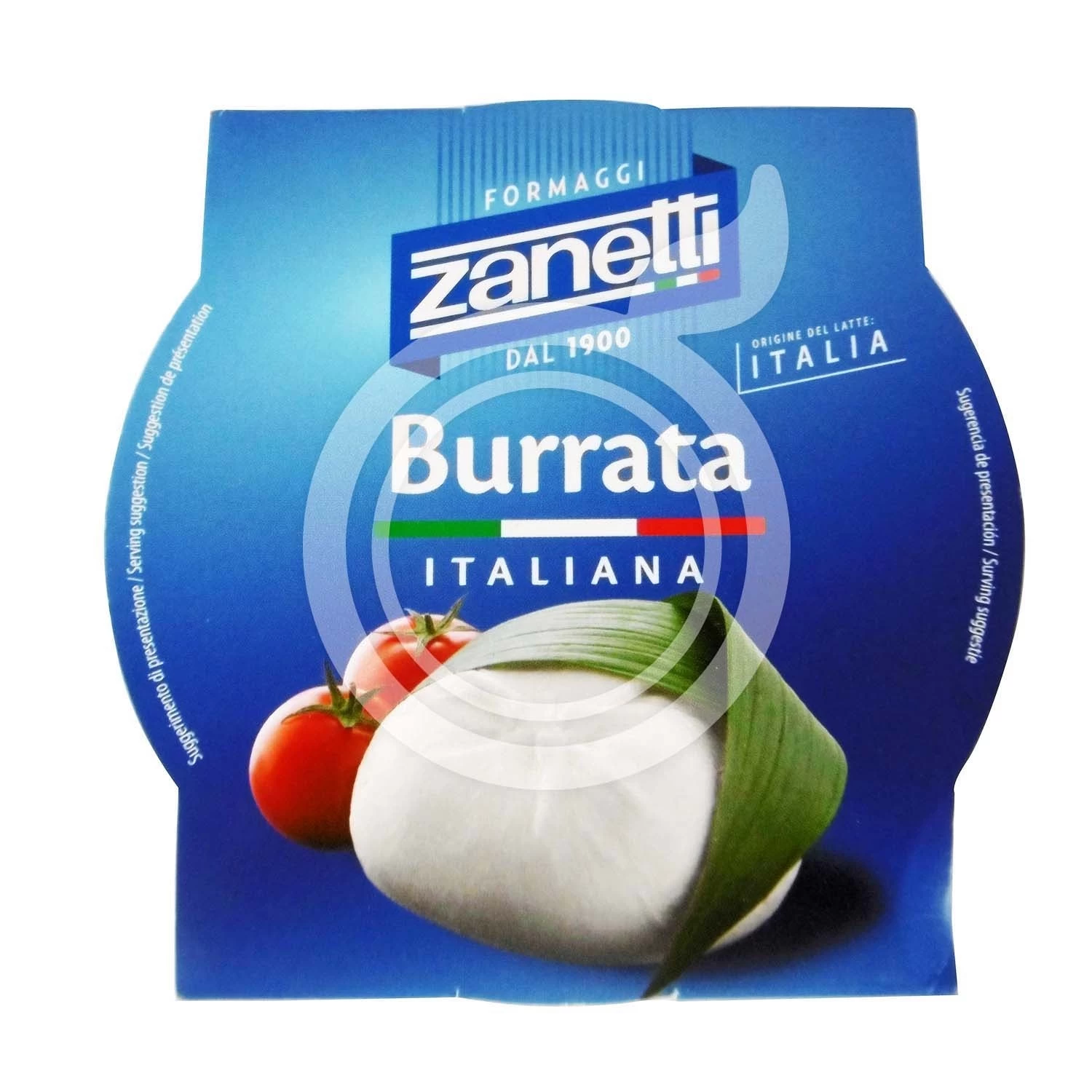 Zanetti Burrata este o delicioasă brânză proaspătă obținută din mozzarella proaspătă umplută cu smântână proaspătă și caș.