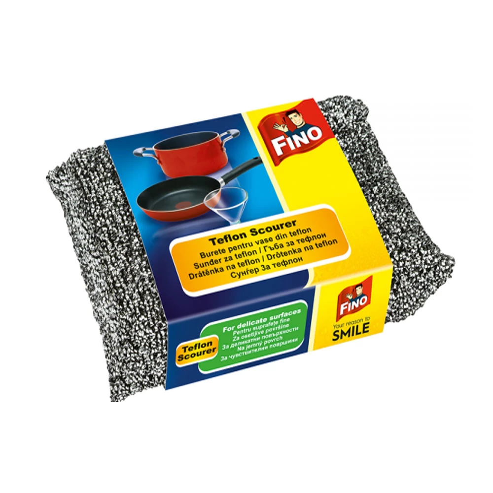 Burete special pentru vase din Teflon pentru ca are toata puterea unui burete rezistent, fara a zgaria vasele.
