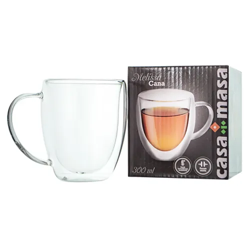 Cana Melissa de 300 ml cu pereți dubli Melissa este fabricată din sticlă rezistentă la căldură.