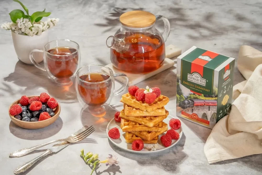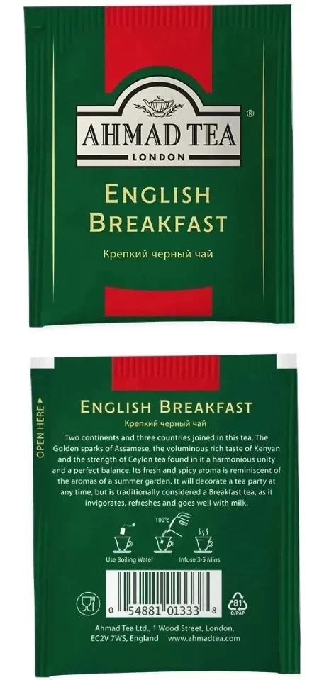 Ahmad Tea English breakfast tea este un mic dejun englezesc clasic, care constă în ceai negru, lapte și zahăr. Acest ceai are un gust și o aromă bogate și conține multe beneficii pentru sănătate. Este ideal pentru ceaiul de dimineață și poate fi servit fierbinte sau rece.