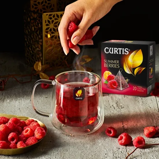 Ceaiul Curtis Summer Berries este o băutură de ceai floral aromat, cu bucăți de fructe de pădure și fructe de pădure. Se distinge printr-o aromă strălucitoare și rafinată de zmeură coaptă.