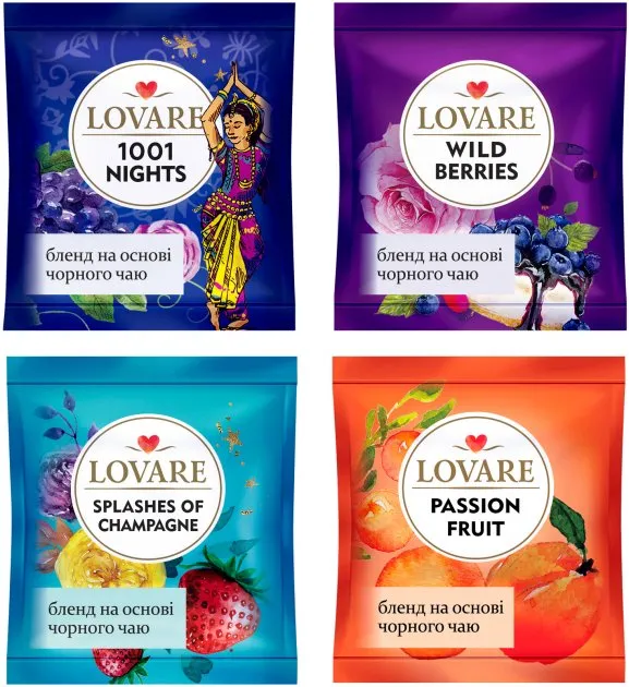 Sortimentul "Lovare" de 4 amestecuri de ceai negru este un cadou original pentru toți cunoscătorii și iubitorii de ceai de calitate - pliculețe de ceai exclusive în plicuri individuale. Fiecare pachet al sortimentului conține 4 tipuri de ceai în 6 plicuri.