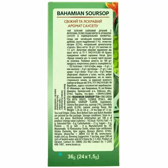 Lovare Ceai 24 pak verde Bahamian Soursop
