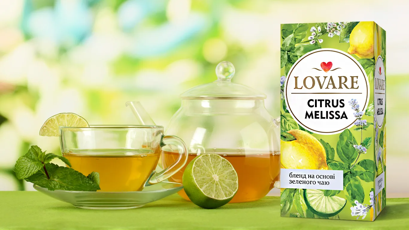 Lovare Citrus Melissa este un amestec de ceai verde și ceai de plante care vă va oferi un sentiment de vivacitate și un nou început.