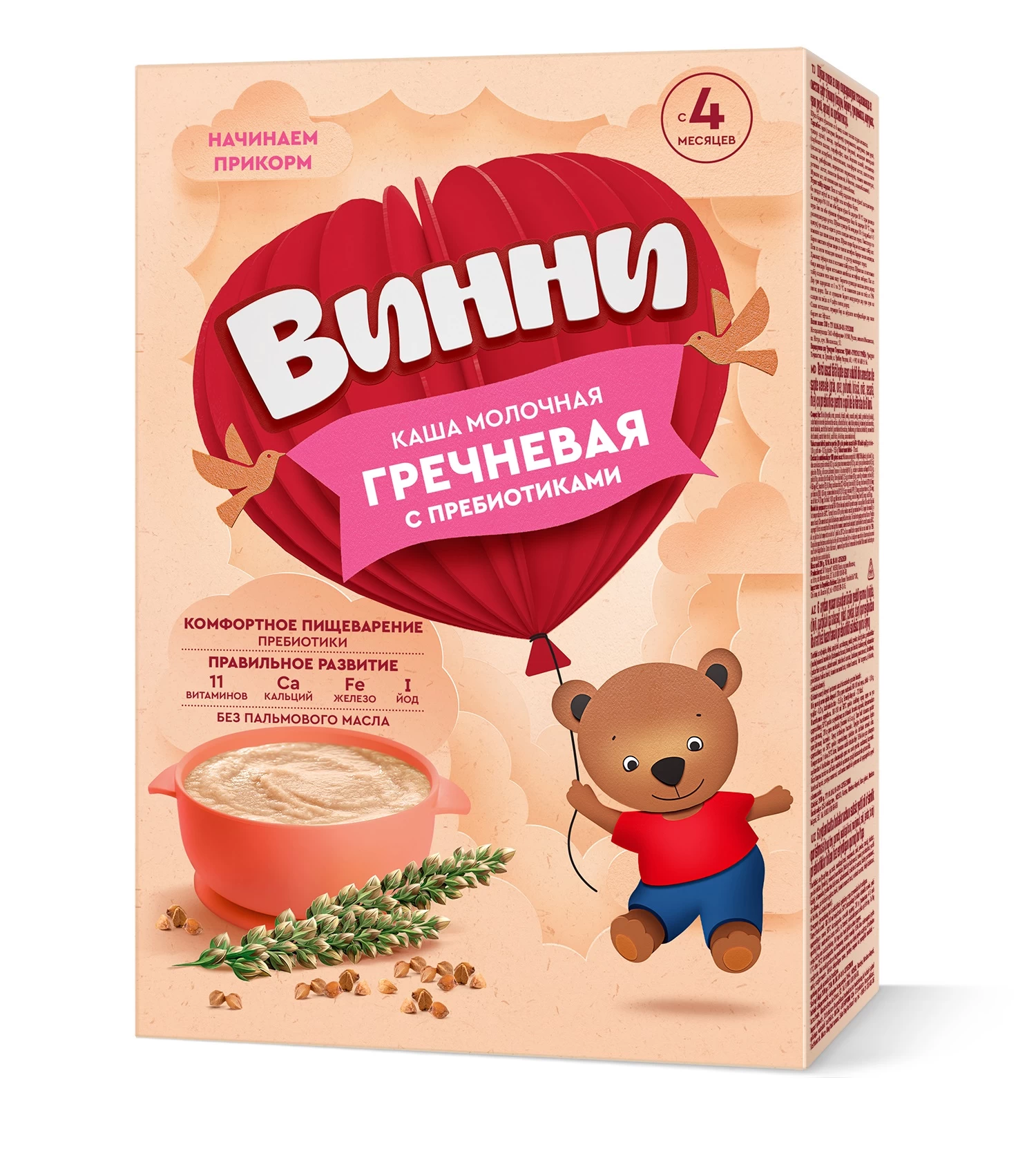 Compoziție: făină de hrișcă, lapte praf integral, zahar, prebiotice (inulina), minerale (carbonat de calciu, pirofosfat de fier, iodură de potasiu), vitamine (acid L-ascorbic, nicotinamida, acetat de D-alfa-tocoferol, calciu D-pantotenat, Riboflavină, clorhidrat de piridoxină, mononitrat de tiamină, acetat de retinol, acid folic, D-biotină, ciancobalamină). Poate conține urme de gluten.