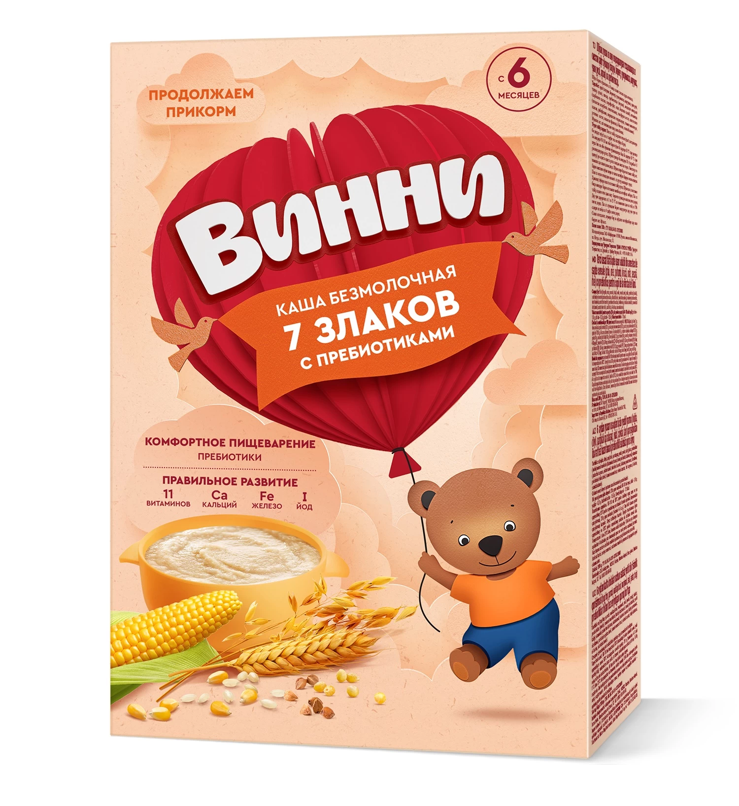 Porții din mai multe cereale sunt potrivite pentru extinderea dietei unui copil mai vechi de 6 luni. Combinația a 7 cereale umple copilul cu energie, iar prebioticele ajută la menținerea unei microflore intestinale sănătoase.
