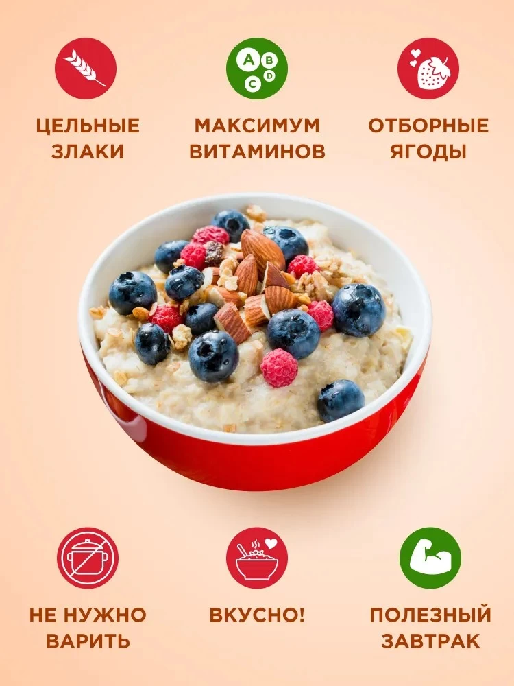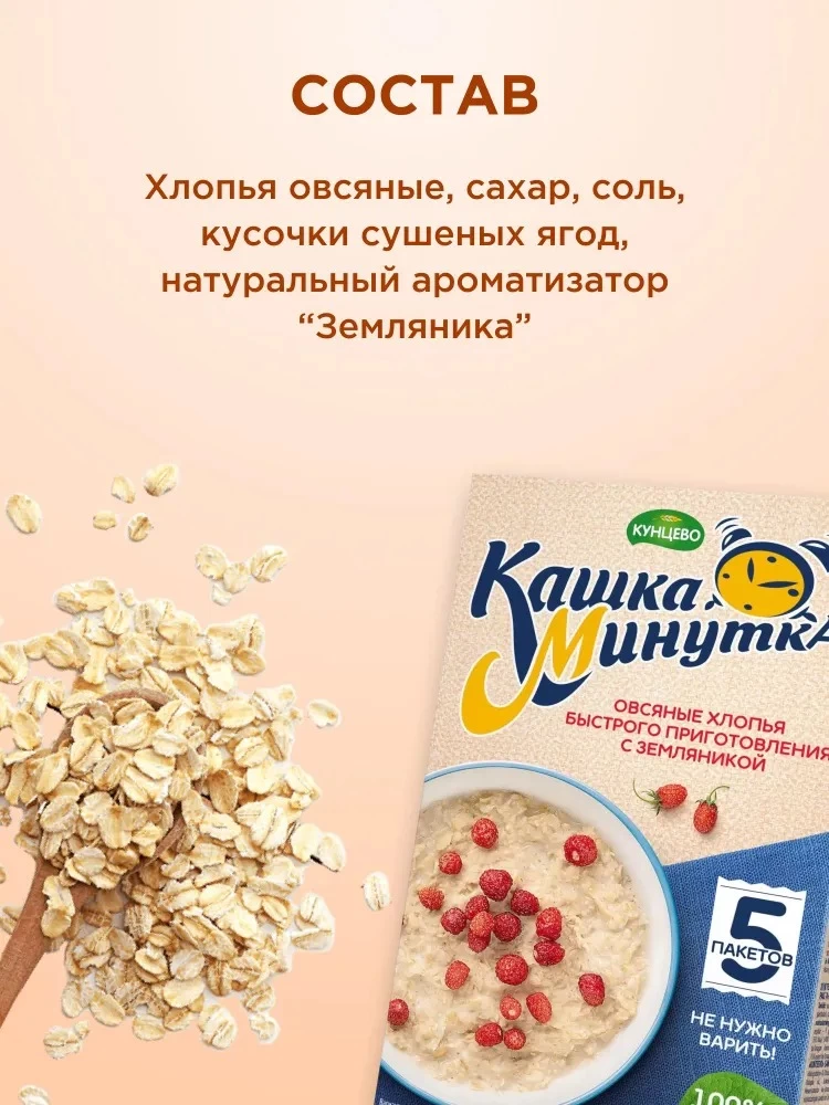 Fulgi de ovăz, zahăr, sare, bucăți de fructe de pădure uscate, aromă naturală „Căpșuni”.