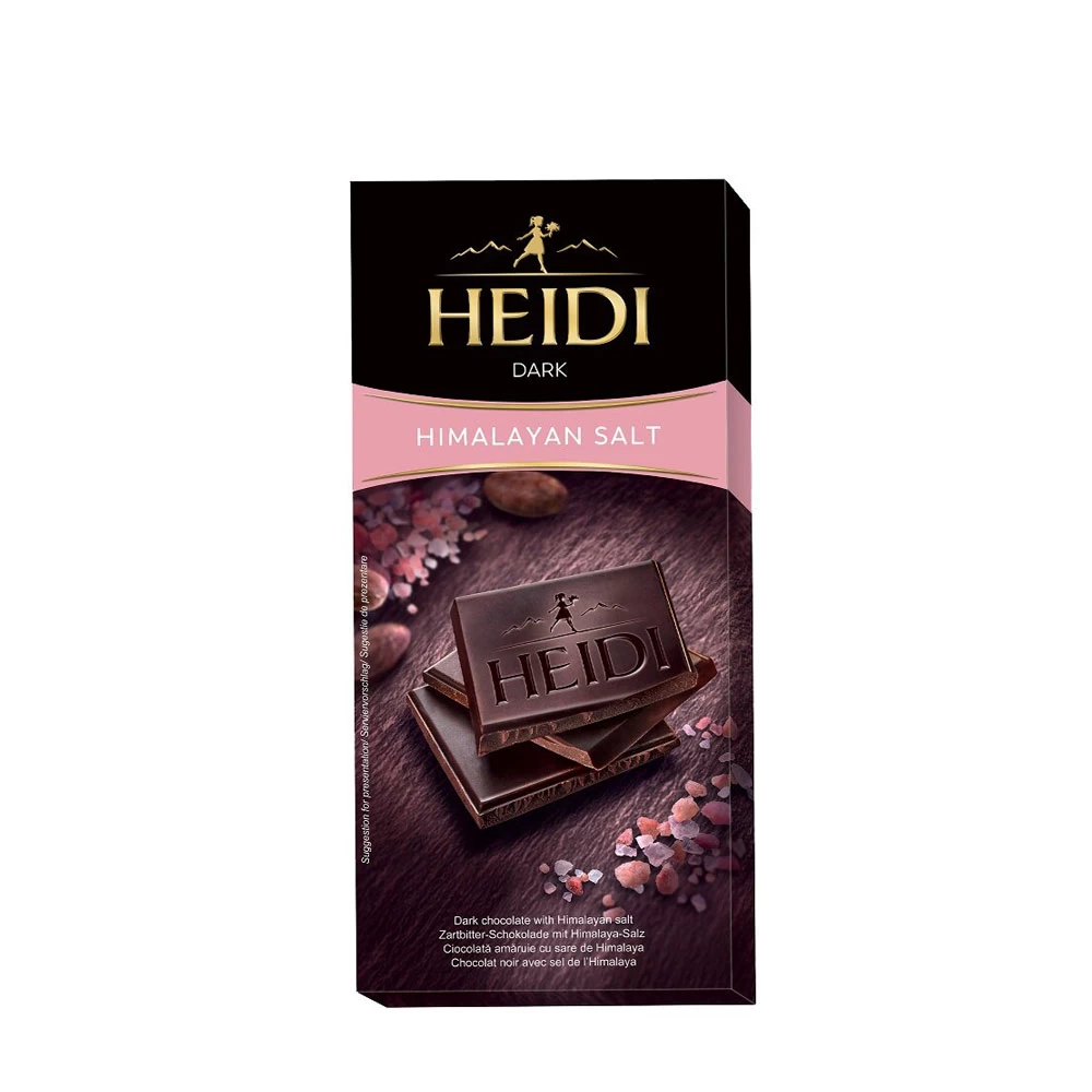 Ciocolata amaruie Heidi Dark cu sare de Himalaya 80 gr. – o combinație surprinzătoare între gustul intens de ciocolată neagră și notele delicate de sare roz de Himalaya. Acest contrast fin între dulce și sărat creează o experiență unică, destinată celor care iubesc aromele sofisticate și rafinate. Fiecare pătrățel este o invitație la răsfăț culinar autentic.