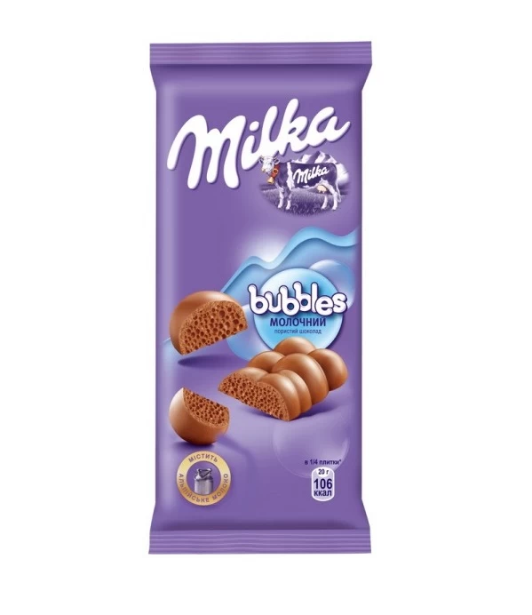 Milka Bubbles este o combinație uimitoare de ciocolată delicată și o textură ușoară, spongioasă, care face noul produs atât de uimitor de delicios.