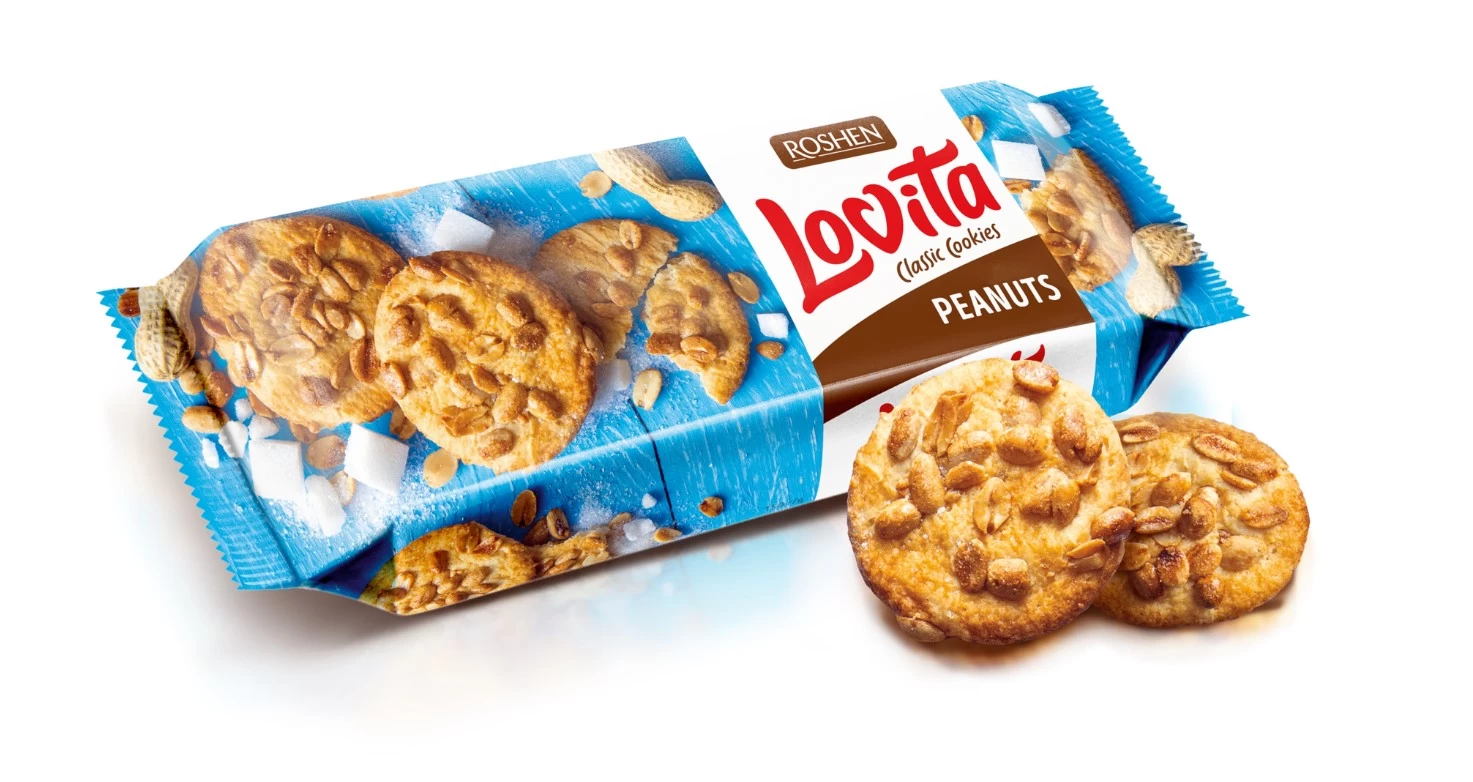 Ingrediente: făină de grâu premium, zahăr, sâmburi de arahide prăjite 21%, margarină (ulei de palmier, lecitină de soia emulgator), melanj de ouă, agenți de dospire (dihidrogen pirofosfat de sodiu, bicarbonat de amoniu, bicarbonat de sodiu), praf de copt [dezintegranți dihidrofosfat de sodiu), făină de orez ], sare, aromă, acid lactic regulator de aciditate. Poate conține produse lactate, alune, migdale, semințe de susan, sulfiți.