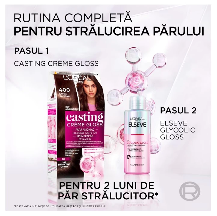 Casting Crème Gloss contine balsam imbogatit cu ulei de cocos. Asigura nuante bogate de saten si reflexe intense. Noua colectie COOL brunette: mixul perfect de reflexe reci, irizate si cenusii, care neutralizeaza tonurile calde/aramii, pentru o culoare cu aspect natural si o stralucire de exceptie. - crema coloranta fara amoniac pentru un miros placut; - culoare ultra-stralucitoare cu reflexe vizibile; - asigura acoperirea optima a firelor de par alb; - asigura hranire intensa pentru un par matasos si voluptos; - colorare ce dureaza pana la 28 de samponari.