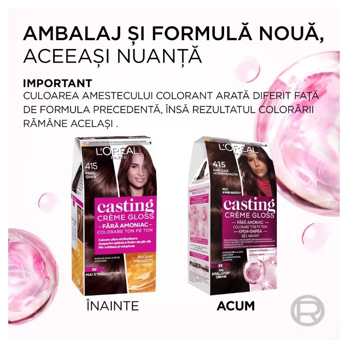 Vopsea de par semi-permanenta fara amoniac L'Oreal Paris Casting Creme Gloss 415 Maro Glace, 180 ml