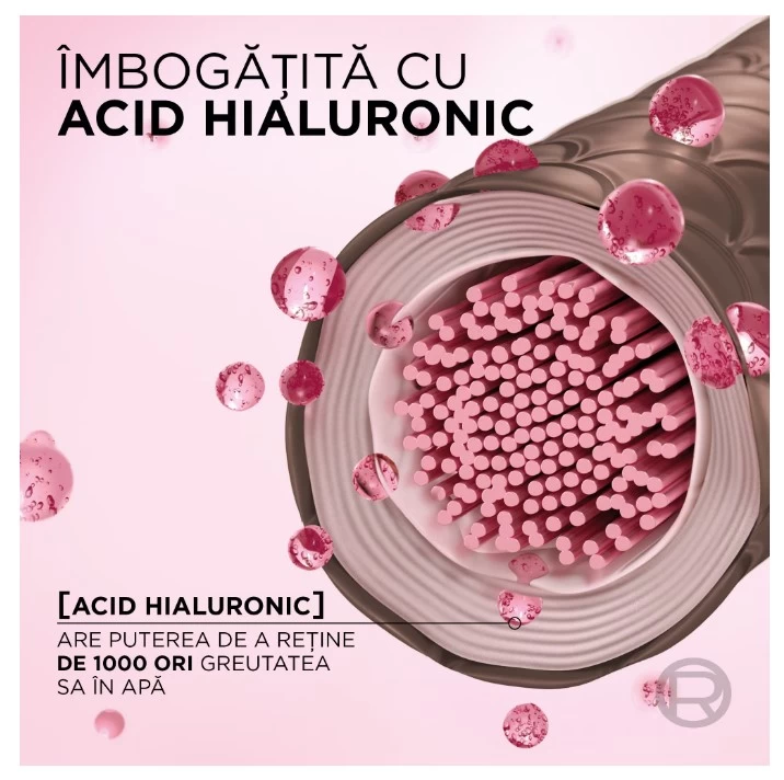 Infuzat cu Acid Hialuronic, hidratează și curăță delicat scalpul și părul de reziduurile în exces, pentru un aspect natural al părului.