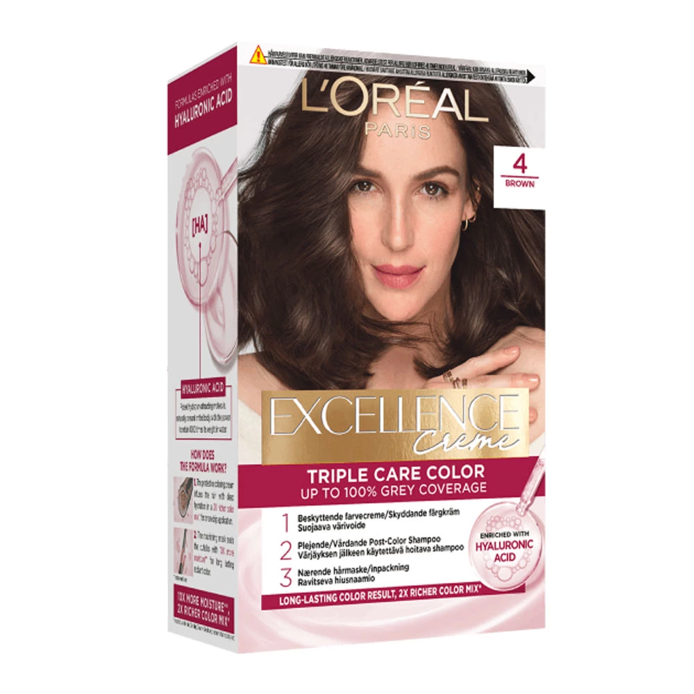 Vopsea de par permanenta cu amoniac L'Oreal Paris Excellence Creme 4 Saten Mediu, 192 ml