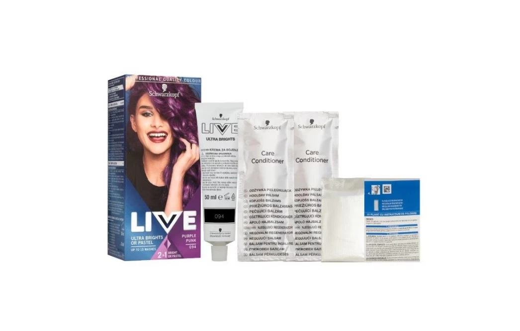 Vopsea semipermanentă pentru păr Schwarzkopf LIVE Colour Ultra Brights 094 Purple Punk - pentru nuanțe strălucitoare sau pastelate.