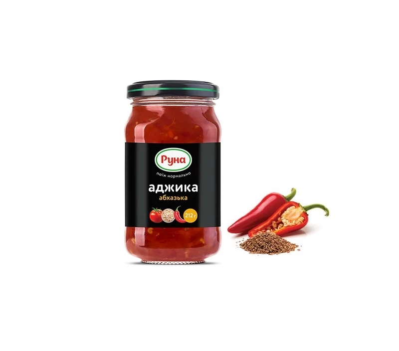 Abkhazian Adjika este un condiment colorat originar din cea mai strălucitoare și mai caldă regiune din Georgia - Abhazia. Compoziția acestui condiment este cu adevărat unică: în plus față de notele de bază ale pastei de roșii, are acorduri de ardei dulce, coriandru, păstârnac, busuioc și zarzavat. Combinația armonioasă de condimente permite aromei să se dezvăluie treptat, umplând felul de mâncare cu noi note originale. Se potrivește cel mai bine cu mâncăruri din carne, în special cu miel tânăr sau pui.