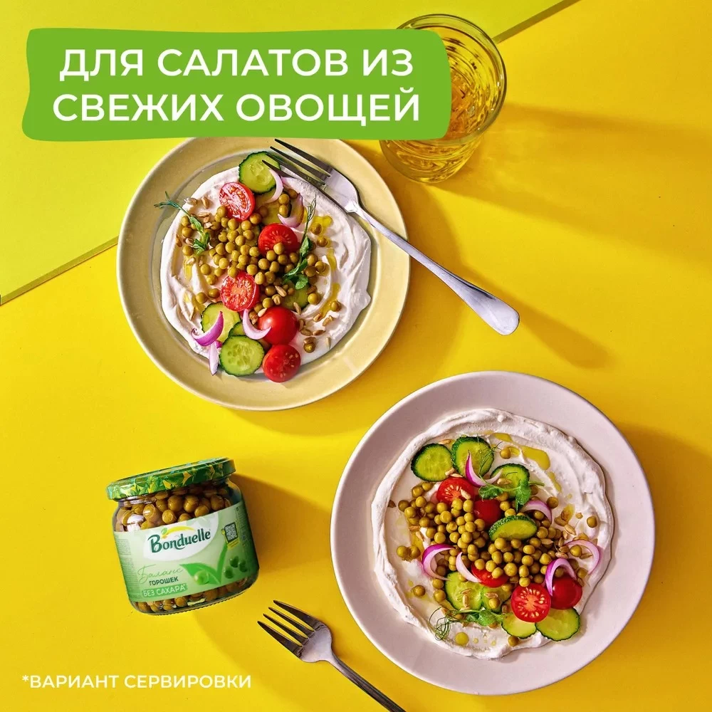 Mazăre verde conservată Bonduelle. Gustul delicat al mazărei verzi va face salatele preferate impecabile. Încălzită și condimentată după gust, mazărea verde este o garnitură excelentă.