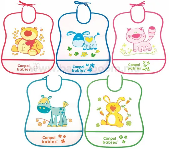 Barbita haioasa protejeaza efectiv hainutele copilului in timpul mesei de eventuale pete de mancare.