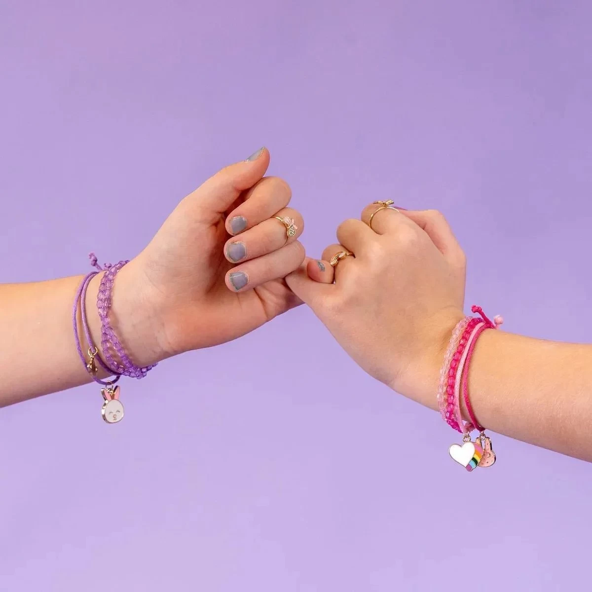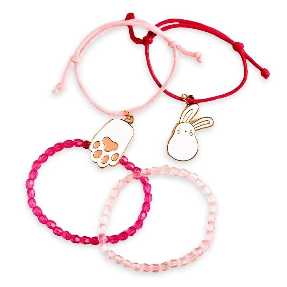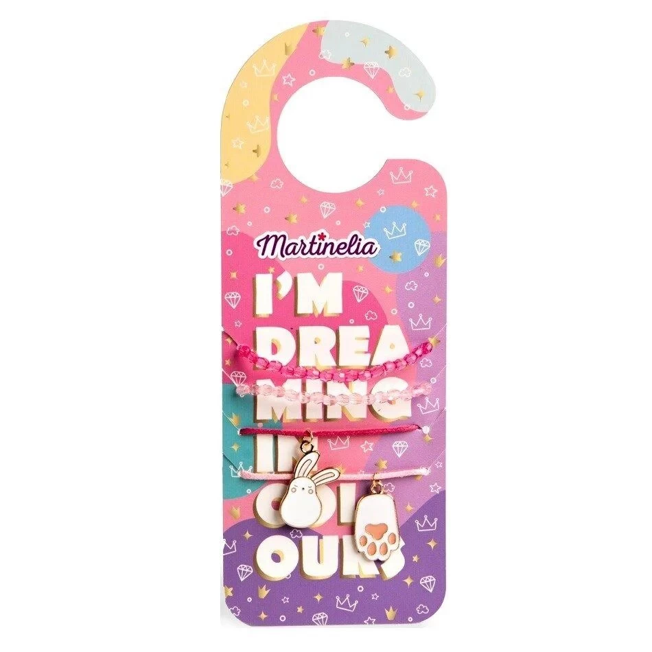 I'm Dreaming In Colors de la Martinelia un set uimitor care include 4 bratari pentru copii in nuante de roz, cu model iepuras si labuta de iepuras. Include suport de agatare si depozitare.