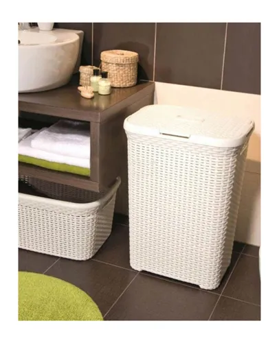 Coșul NATURAL STYLE este conceput pentru o capacitate mare de 60 de litri de rufe uscate și va fi cu siguranță util într-o gospodărie cu o familie numeroasă. Coșul gri stă pe picioare, cu mânere ușor de manevrat în partea superioară și un capac cu închidere etanșă. Este ușor de menținut coșul curat folosind un detergent normal. Produsul nu-și pierde forma și culoarea la o utilizare continuă.
