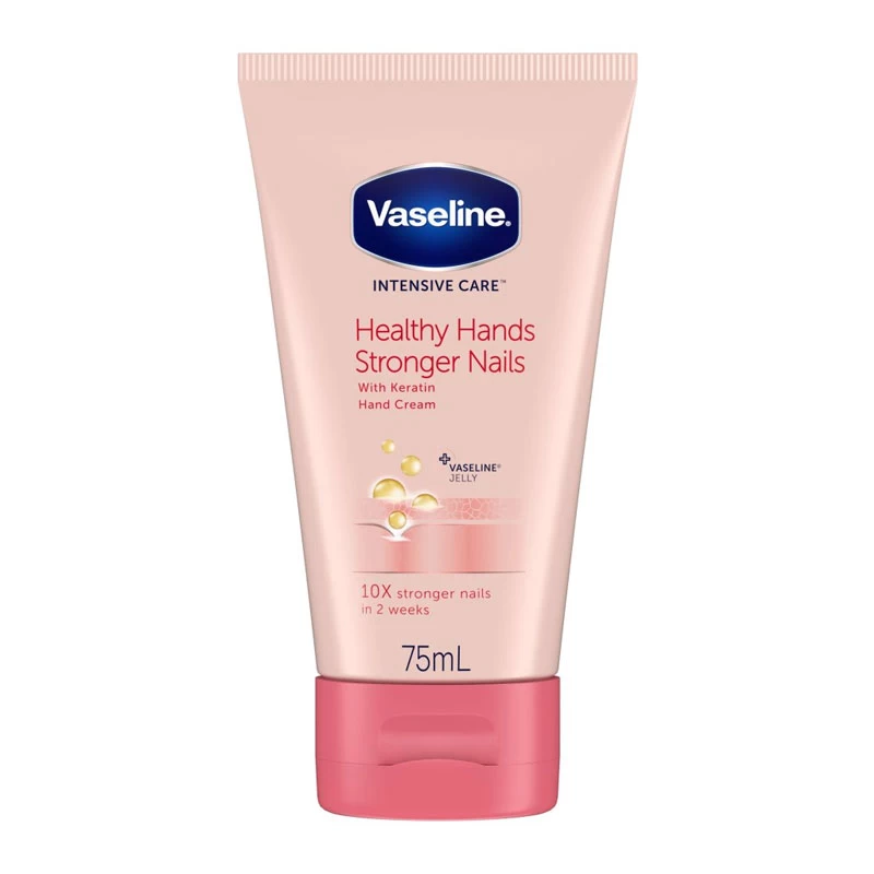Vaseline vindecă toate tipurile de piele, făcând-o frumoasă și sănătoasă, iar crema de mâini Vaseline Intensive Care Healthy Hands Stronger Nails nu face excepție.