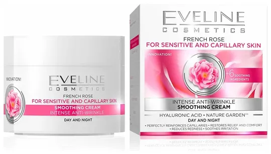 Crema de lux cu acid hialuronic French Rose Active Anti-Aging Cream de la brandul polonez Eveline Cosmetics este ajutorul perfect pentru pielea uscată și sensibilă. Formula îmbogățită cu ingrediente naturale active, combinată cu introducerea unor dezvoltări de înaltă tehnologie, îngrijește perfect epiderma afectată de cuperoză. Crema ameliorează rapid și eficient iritațiile, calmează și are un efect regenerator asupra zonei feței, gâtului și decolteului.
