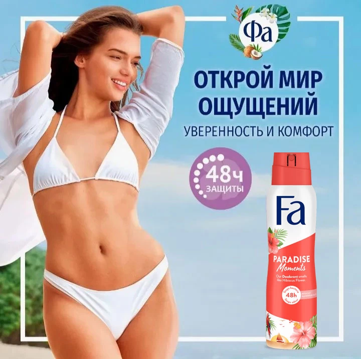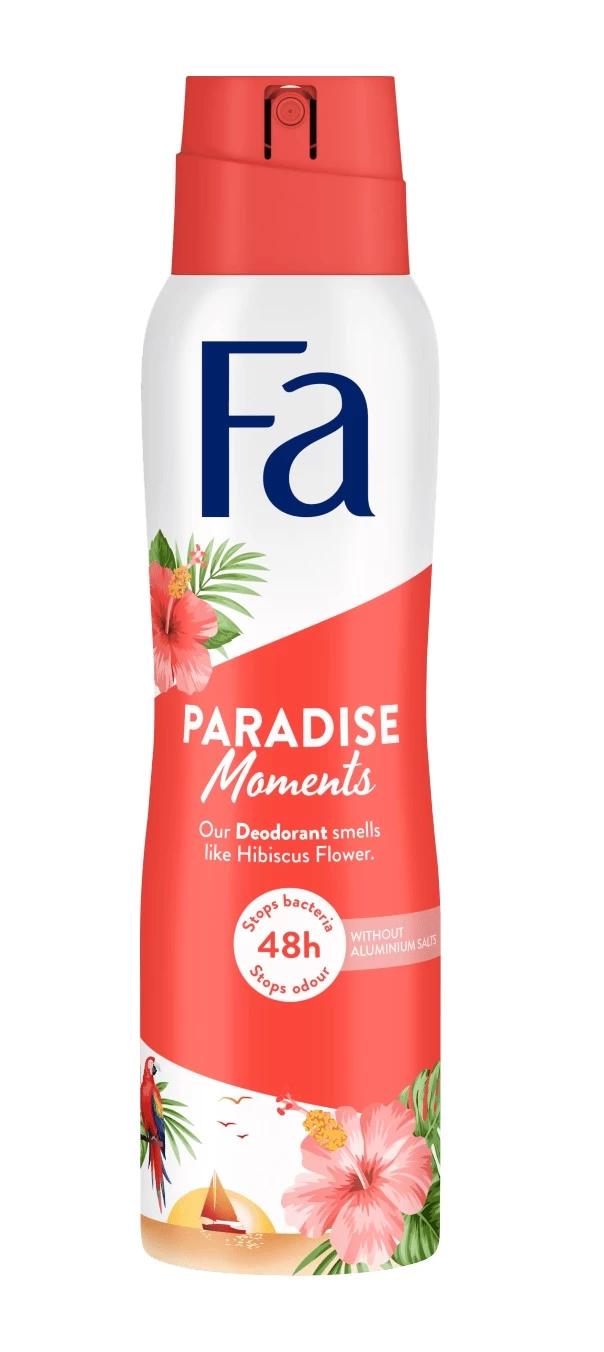 Deodorantul Paradise Moments de la Fa are o aroma delicata de hibiscus care mangaie simturile si ofera protectie fiabila impotriva transpiratiei timp de pana la 48 de ore. Formula nu contine saruri de aluminiu si nu lasa urme pe piele sau imbracaminte. Deodorantul previne in mod eficient raspandirea bacteriilor, care sunt principala cauza a mirosurilor neplacute. Produs vegan.