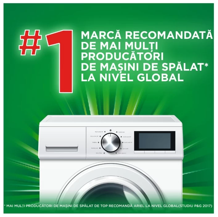 Ariel este recomandat de catre mai multi producatori de masini de spalat de top decat oricare alta marca de detergent la nivel global.