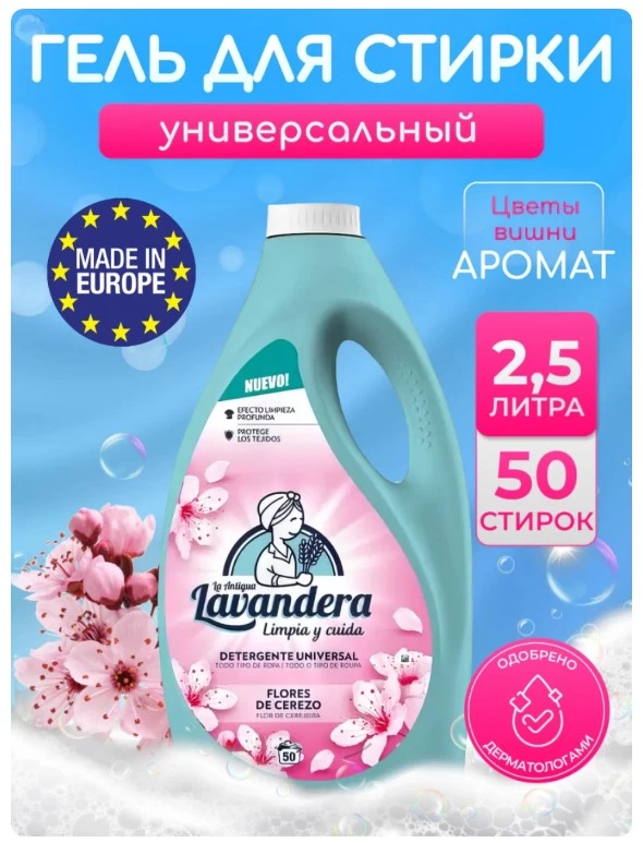 - Lavandera Detergent Lichid Flores De Cerezo 2.5 l, 50 spalari
