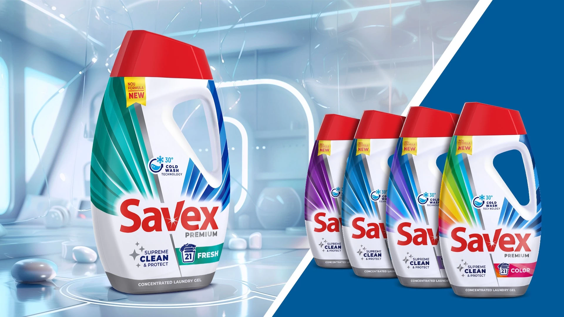 Gelul concentrat SAVEX asigura curatarea profunda a tesaturilor, lasadu-le curate si parfumate de la prima spalare.