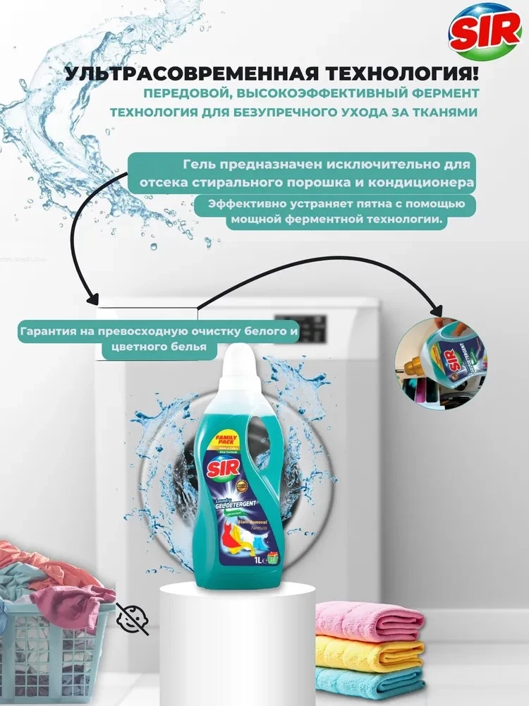 - SIR Gel detergent lichid pentru rufe Universal 1 l, 33 spalari