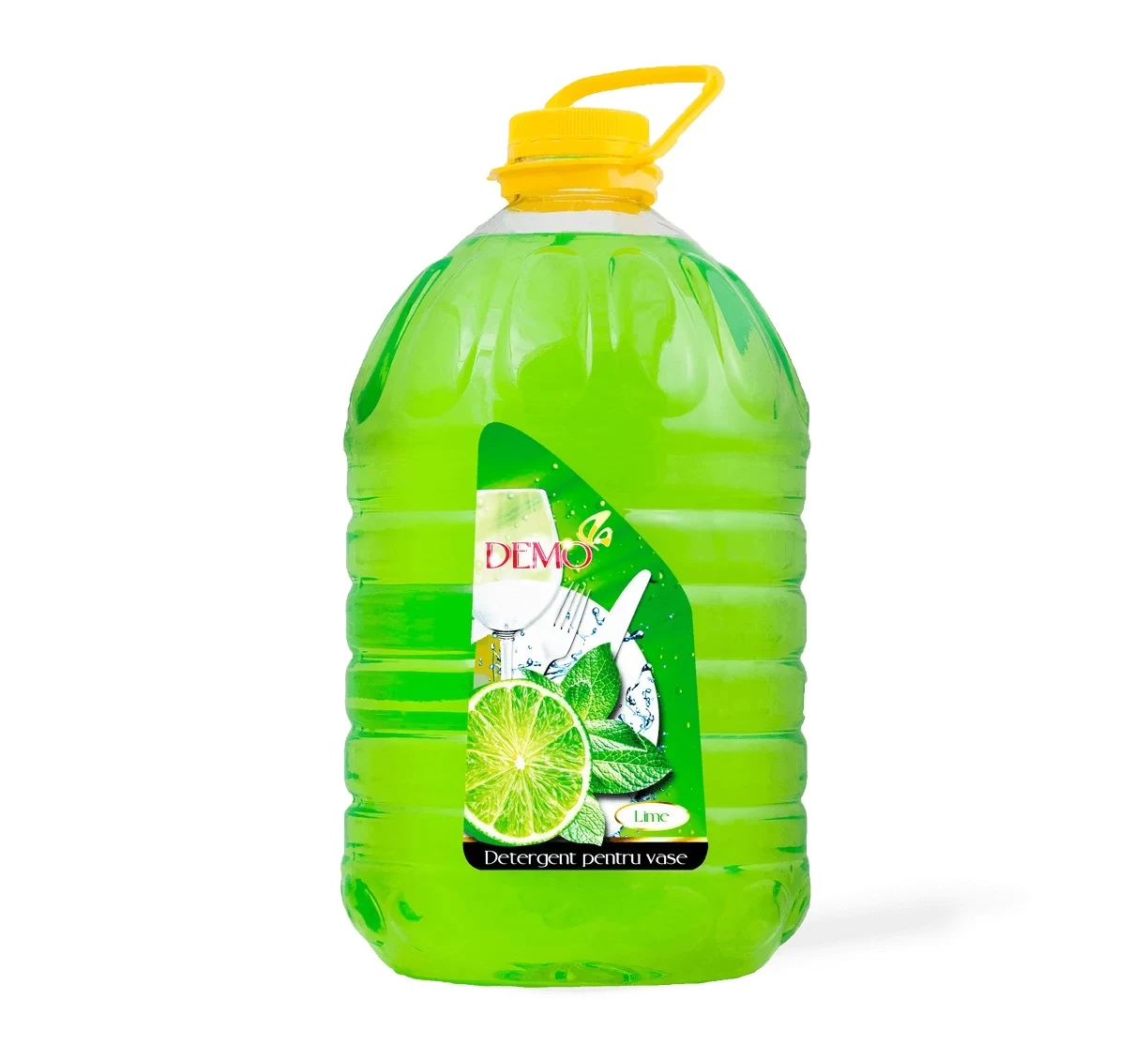 Detergent pentru vase “Demo” lime. Curata si indeparteaza urmele de grasime si murdarie de pe suprafetele veselei si a ustensilelor de bucatarii. Dizolva depunerile alimentare: proteine, grasimi, arsuri. Are un pH neutru, apropiat de pH-ul pielii, sigur pentru spalarea manuala a vaselor.
