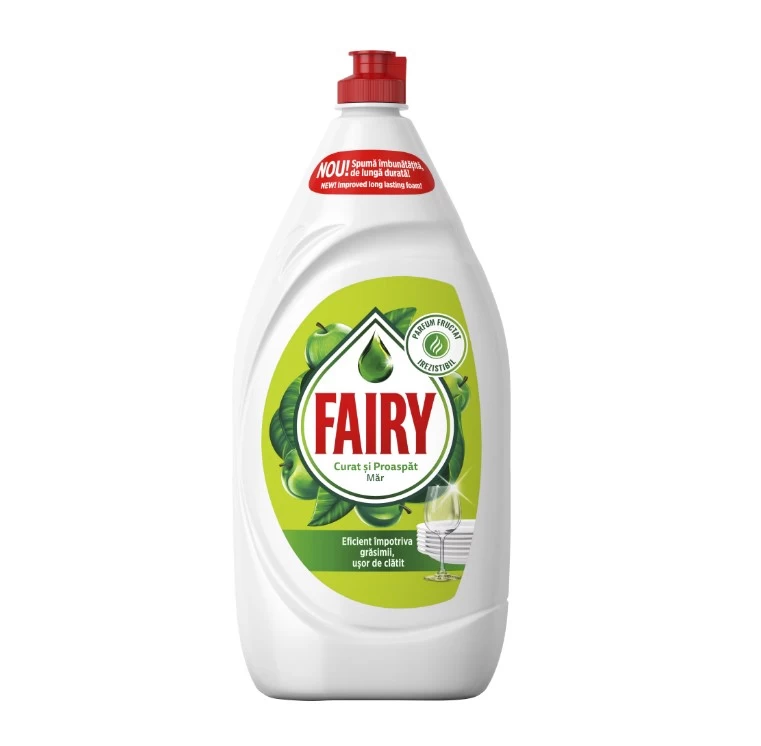 Detergentul de spalat vase Fairy nu numai ca face vasele stralucitoare, dar au si miros curat si proaspat. Va veti bucura de mirosurile placute produse in jurul chiuvetei din bucatarie in timp ce spalati.