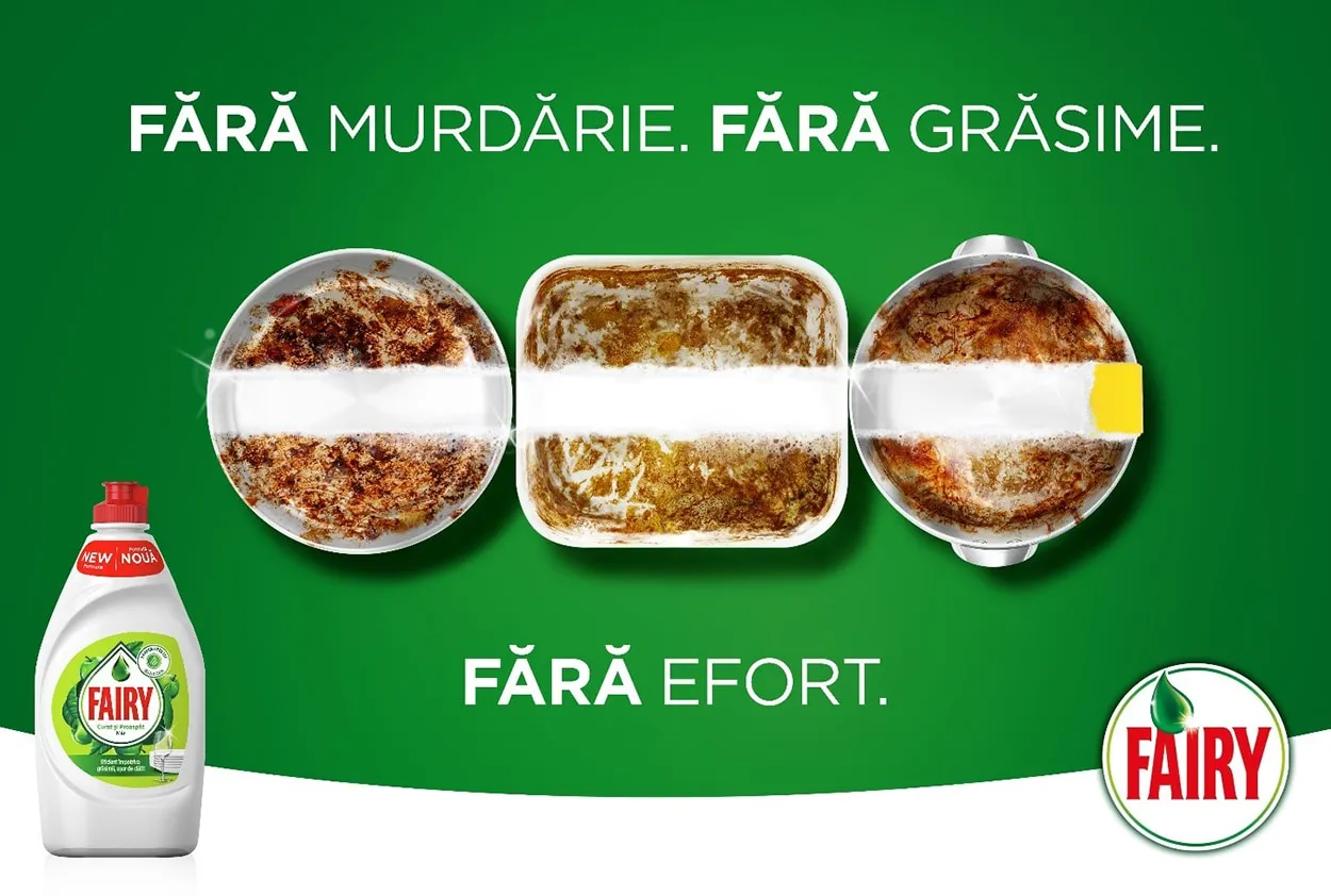 Fairy ofera puterea de curatare pe care va puteti baza oricand la spalatul vaselor. Dureaza de 3X mai mult decat v-ati astepta. De la vase la pahare, cratite si tigai, formula puternica a Fairy elimina cu usurinta grasimea, indiferent de provocare. Disponibil intr-o gama larga de parfumuri, precum Lamaie, Mar si Rodie, in cantitati diferite.