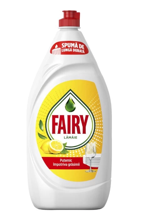 Fairy ofera puterea de curatare pe care va puteti baza oricand la spalatul vaselor. Dureaza de 3X mai mult decat v-ati astepta. De la vase la pahare, cratite si tigai, formula puternica a Fairy elimina cu usurinta grasimea, indiferent de provocare. Disponibil intr-o gama larga de parfumuri, precum Lamaie, Mar si Rodie, in cantitati diferite.