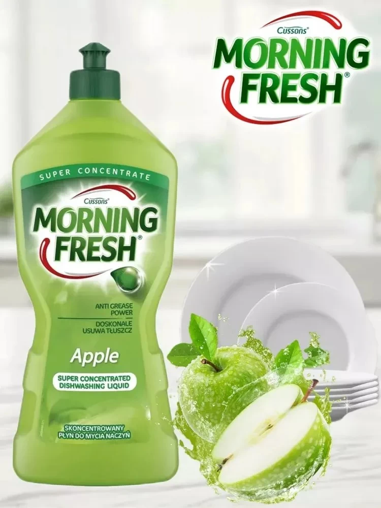 Acest lucru permite economisirea semnificativă a timpului la spălarea vaselor, asigurând o curățenie impecabilă de la prima utilizare. Eficient chiar și în apă rece. Aroma clasică de mere proaspete umple bucătăria cu note plăcute, creând o atmosferă de confort și prospețime. Morning Fresh are grijă de pielea mâinilor.