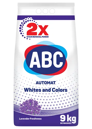 Detergent de rufe ABC Lavender Lavanda. Detergentul de rufe automat pentru spălarea culorilor și a rufelor albe îndepărtează petele dificile și, împreună cu ingredientele active intensive, penetrează în profunzime în fibrele țesăturilor și face față în mod eficient tuturor tipurilor de murdărie. Datorită sistemului de control al spumei, lichidul este clătit în mod eficient și nu rămâne în fibrele țesăturilor după spălare. Enzimele și componentele naturale elimină 99,9% din toți germenii, precum și toate tipurile de acarieni de uz casnic și resturile acestora din fibrele țesăturilor. Îndepărtează mirosurile neplăcute. Tipuri de țesături: bumbac, in, poliester, viscoză, nailon, fibre acrilice.