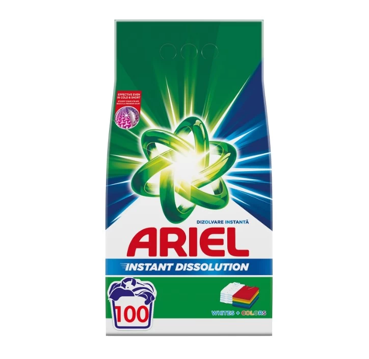 Acum, cu ajutorul formulei sale concentrate, detergentul pudra Ariel Whites & Colors asigura o putere de curatare mai mare si spala mai multe rufe per kilogram, indepartand impecabil petele dintr-o singura spalare, protejand totodata culorile. Datorita tehnologiei unice de dizolvare instanta, pudra se dizolva rapid in contact cu apa si patrunde adanc in fibre, chiar si in ciclurile de spalare in apa rece.